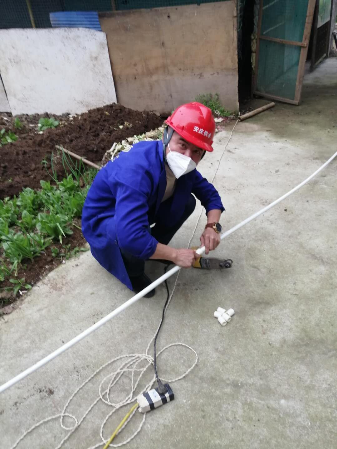正當大家沉浸在歡度春節(jié)的喜悅氣氛中時,一場突如其來的新冠肺炎疫情在全國迅速蔓延,對人民群眾健康造成極大威脅。因楊橋鎮(zhèn)上有部分村民在外地打工,之前無人在家,工人們無法關閉其家中的老閥門為其通水,而這些村民在大年三十前后才陸陸續(xù)續(xù)回到家中,要求開閥通水。要通水就必須先關閉用戶家中的老閥門,再開啟新裝閥門才能接通,楊橋鎮(zhèn)地勢復雜、用戶分散、而村民從外地返回家中的時間又不一致,這就需要大量的人員進行此項工作。而此時正值春節(jié)假期,工人們都已放假,又處于疫情防控的特殊時期,各路口、村口、小區(qū)也設了卡,外地的工人們都在家不能外出,人手不夠怎么辦?程勝平接到任務后沒有遲疑,立即辦理了臨時出入證明,迅速組織,帶領當?shù)氐膸讉€工人進行換閥和接水工作。“用戶家中水壓小怎么解決?用戶家中突然爆管如何處理?……”這些問題可難不倒維修工出身的程勝平同志,他精通安裝、維修等各類工種,人手不夠就親自上陣,憑借其多年的工作經驗和熟練的技術,用戶反映的用水難題到他這兒總能迎刃而解。